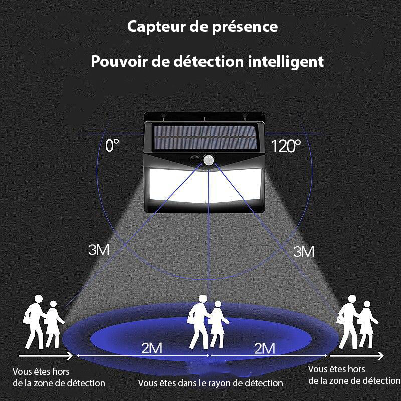 La lampe LED solaire illumine votre extérieur, mais peut également vous servir comme outil de sécurité, grâce à son capteur de mouvement. Il détecte les personnes en mouvement et se déclenche automatiquement. Vous ne raterez plus aucun mouvement dans votre jardin.