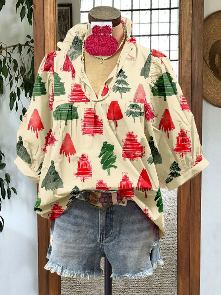Révélez l'esprit festif avec notre Chemisier Motif Sapin de Noël Manches Bouffantes. Une pièce unique qui allie élégance et joie de Noël pour des occasions spéciales et des festivités inoubliables! 🎄👚
