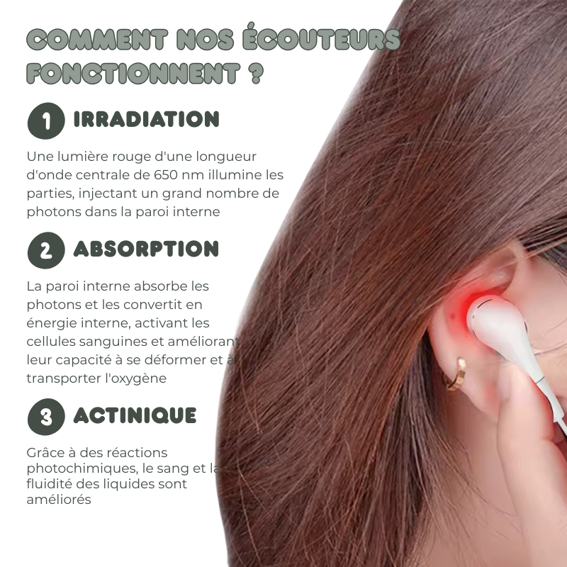 L’action de ces écouteurs ne se limite pas à l’audition ! Leur lumière infrarouge contribue à :