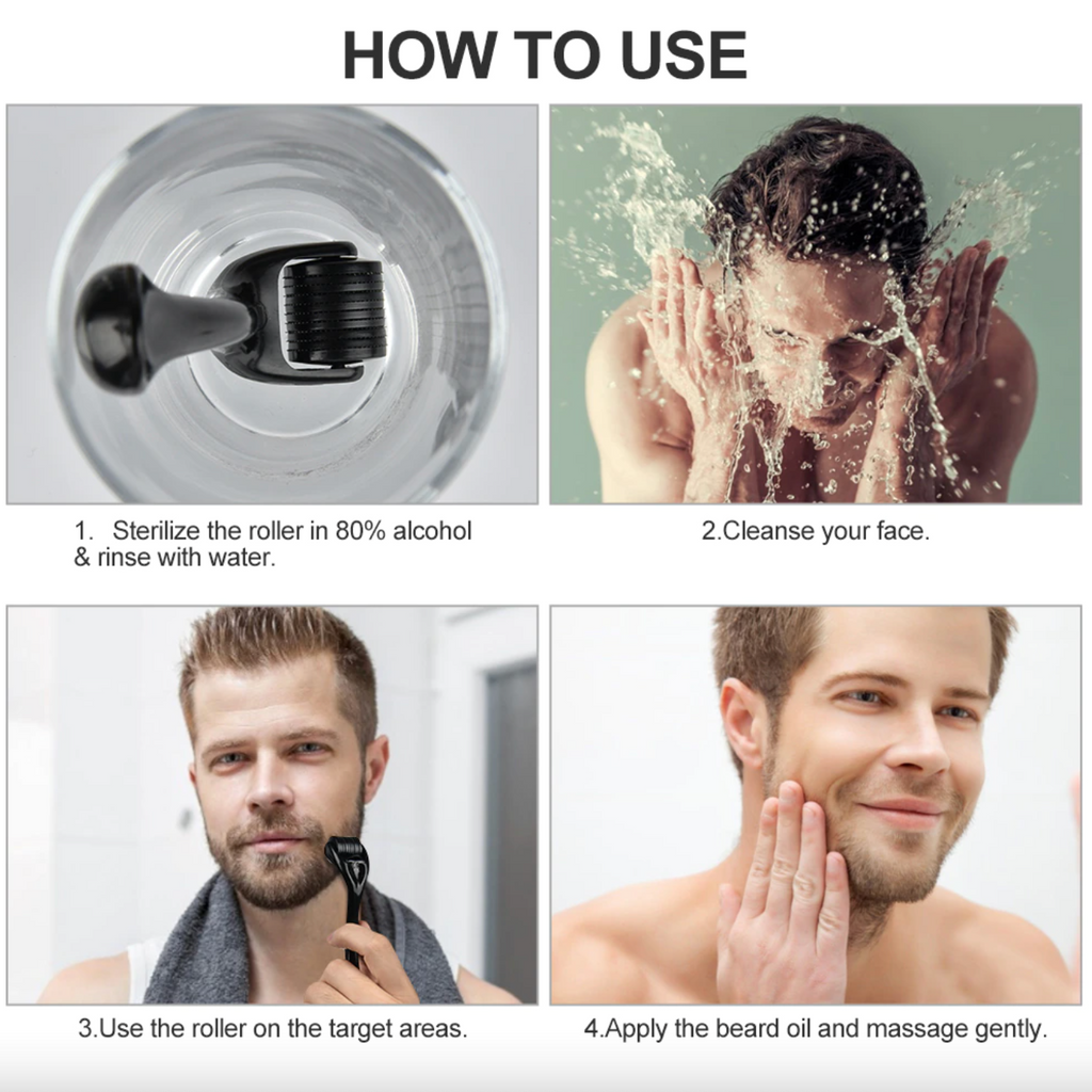 Avec les micro-aiguilles présentes dans le dermaroller de croissance, votre peau sera stimulée, ce qui favorisera votre circulation sanguine. Une fois passée, votre peau absorbera mieux les produits et ainsi, les produits pénétreront aisément dans votre peau. Grâce à ce kit de croissance spécial barbe vous pourrez passer d'une barbe parsemée et sèche à une barbe super fournie et toute douce !