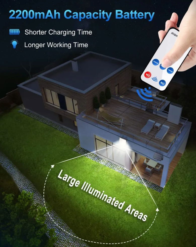Dotée de 228 LED ultra-lumineuses, cette lampe solaire offre un éclairage puissant et homogène, idéal pour éclairer vos jardins, allées, patios et bien plus encore.