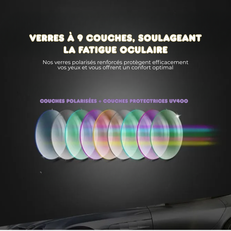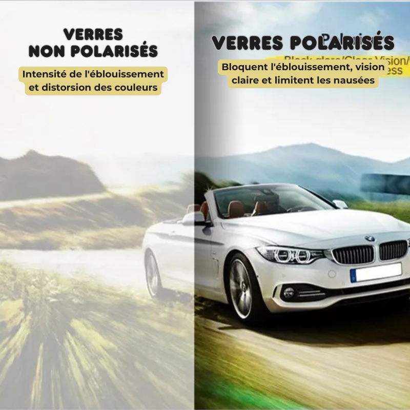 🧲 Verres polarisés pour bloquer les reflets sur l’eau, la neige ou la route