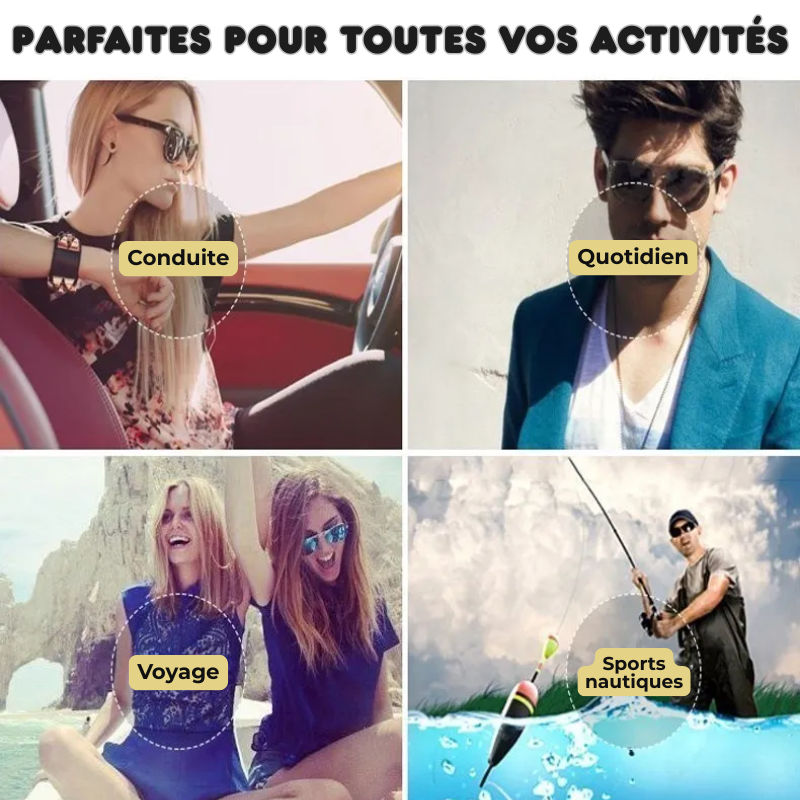 Conçues pour vous accompagner du matin au soir, ces lunettes sont idéales pour la conduite, mais aussi pour : 🎣 La pêche, 🚵 Le vélo, 🏄 Les sports nautiques, 🌇 La ville
