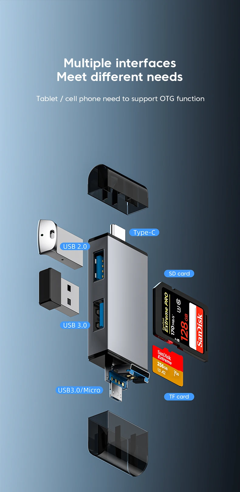 Mini Lecteur USB et Carte SD 3.0 7 en 1 - Transfert Rapide 🚀