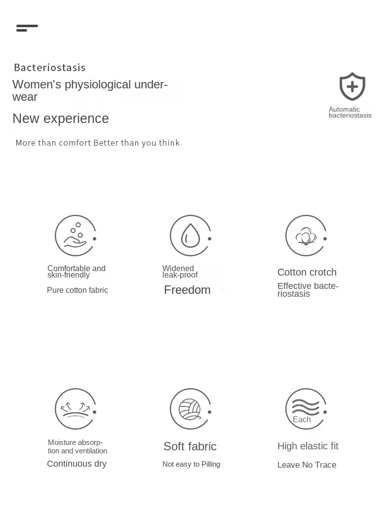 Chaque culotte est dotée d'une doublure absorbante intégrée pour une protection fiable contre les fuites. Restez au sec et en confiance, que ce soit pendant vos règles ou pour une utilisation quotidienne.