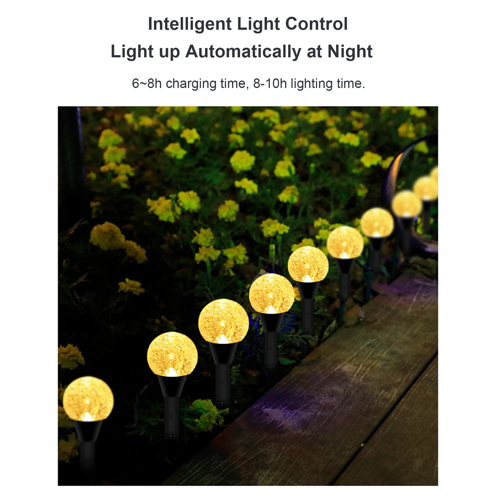 Avec des batteries NI-MH de grande capacité intégrées, ces lampes offrent une longue durée d'endurance, assurant jusqu'à 8 heures de travail continu. Profitez de soirées prolongées éclairées par la douce lueur de ces lampes solaires, créant une atmosphère magique dans votre jardin.